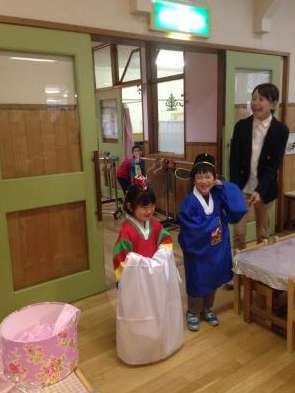 한국에서 방문한다고 하여 한복을 입고 나와준 북해도 어린이들