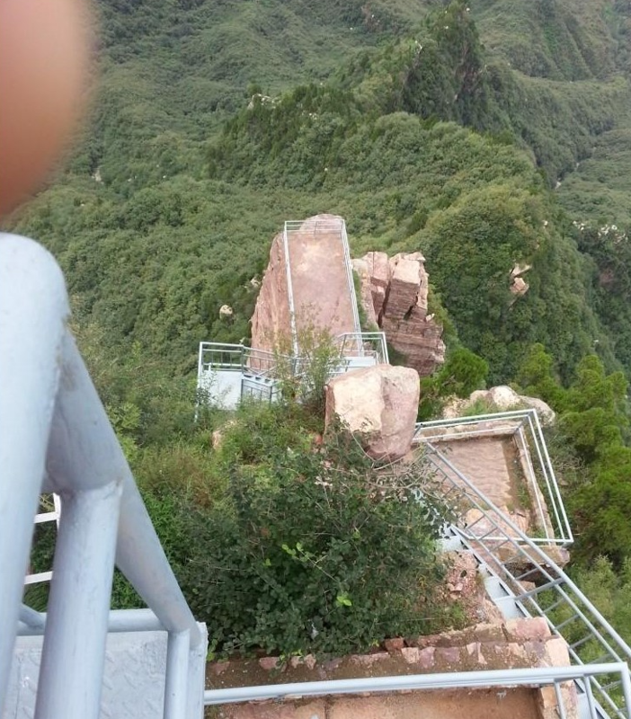 계단 타고 아래로 가면 우뚝 솟은 절벽바위와 연결해 놓은 다리가 있습니다.