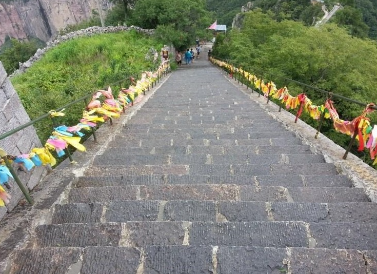 계단을 따라서 내려갑니다. 협곡 위의 마을인 곽량촌으로 향합니다.