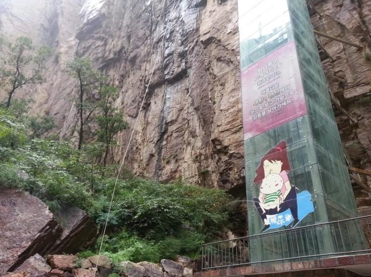 약 60m 정도 되는 엘레베이터를 타고 올라갑니다.