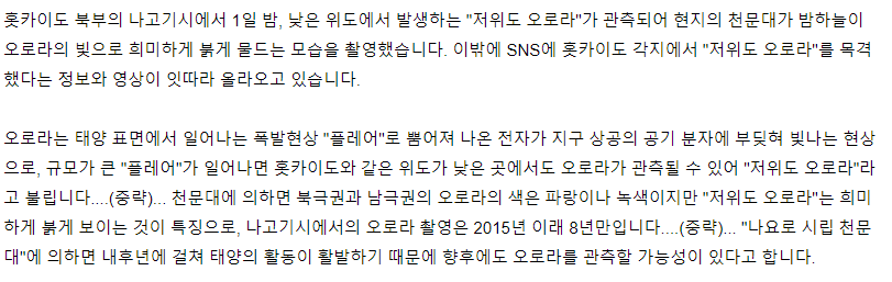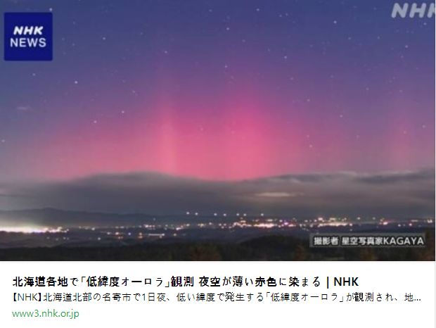 [NHK] 홋카이도 각지에서 '저위도 오로라' 관측