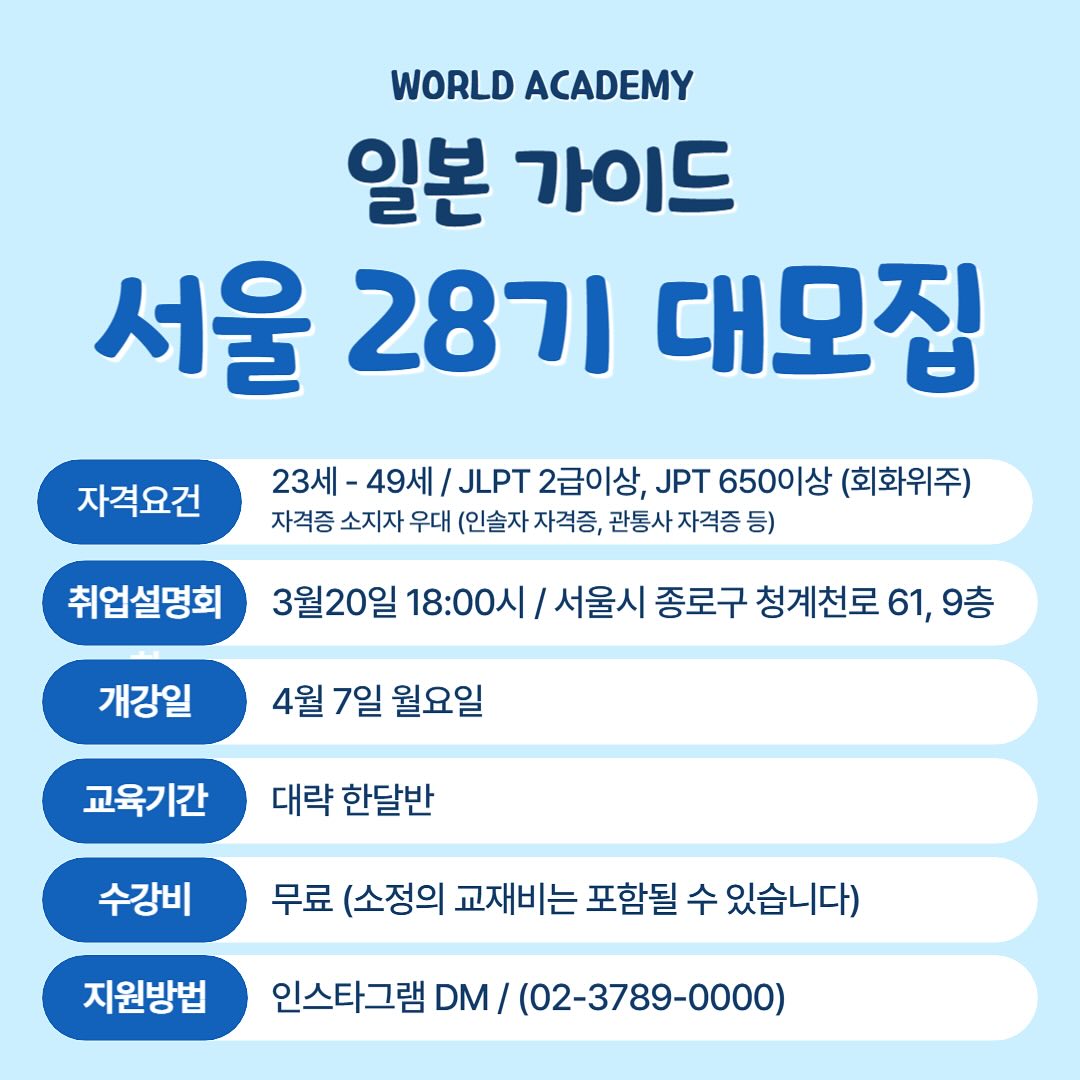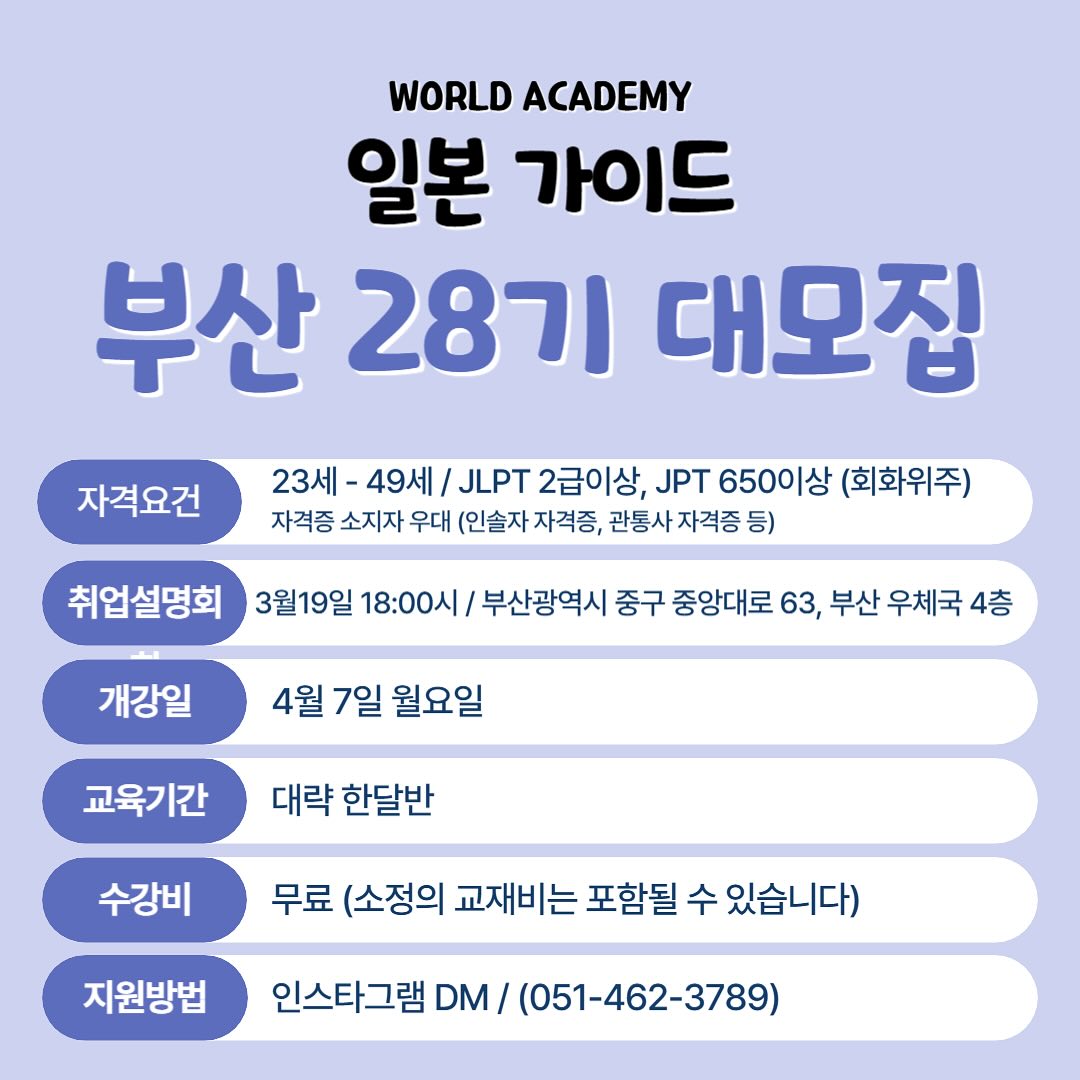 2025 월드에이전시 일본 가이드 28기 모집 안내입니다.